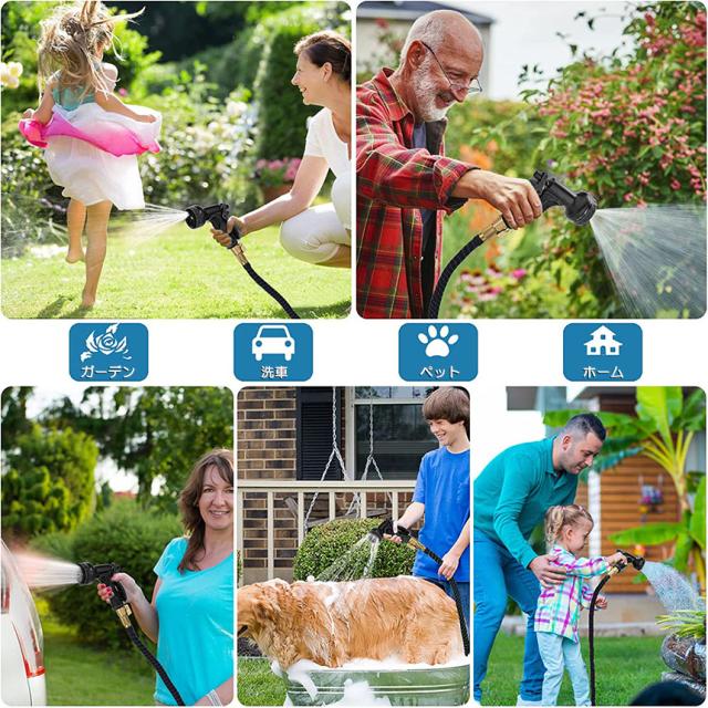 【幅広く使えます】:散水ノズルは8パターンの散水機能を搭載し、マンションや一戸建てのご使用に適しています。庭、ベランダやマンションの掃除、植物への水まき、お子様のプールへの給水、洗車などに幅広く使えます。