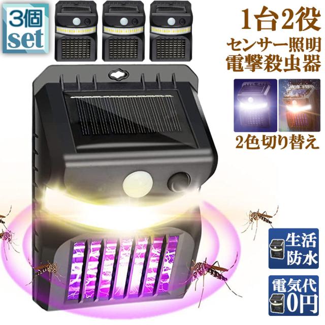 電撃殺虫器 殺虫灯 ソーラーライト 3個セット led センサーライト 蚊よけ 照明 蚊取り 両方使用可能 自動点灯人感センサーライト 虫除け コバエ取り ガーデンライト キャンプ ライト ledライト 人感ライト 玄関ライト おしゃれ 虫取り機 蚊取り