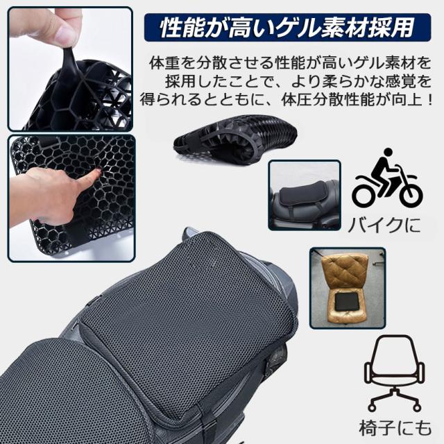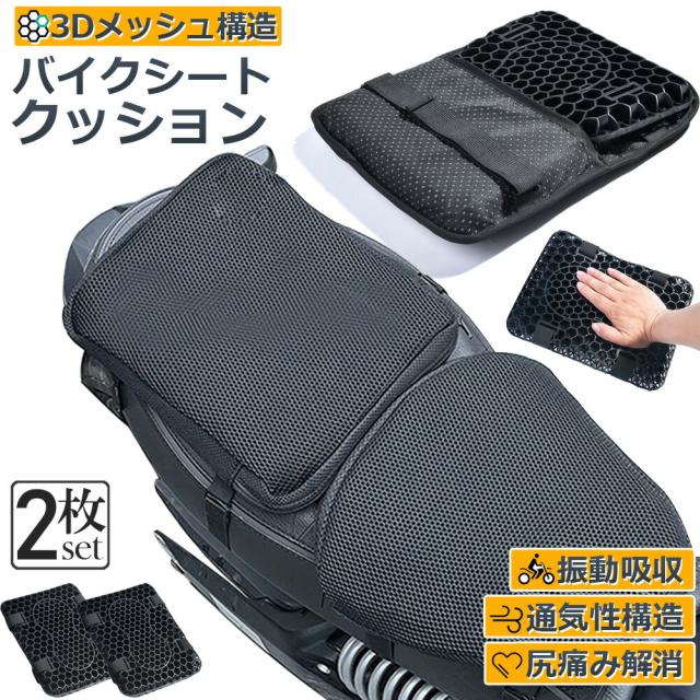 バイク シート クッション 2枚セット ゲルクッション ゲルシートカバー 3D メッシュシートカバー 四季通用 通気 衝撃吸収 人間工学 断熱 日焼け止め 濡れ防止 換気 バイク シートカバー スクーター用 メッシュシートカバー 汎用品 オートバイシートカ