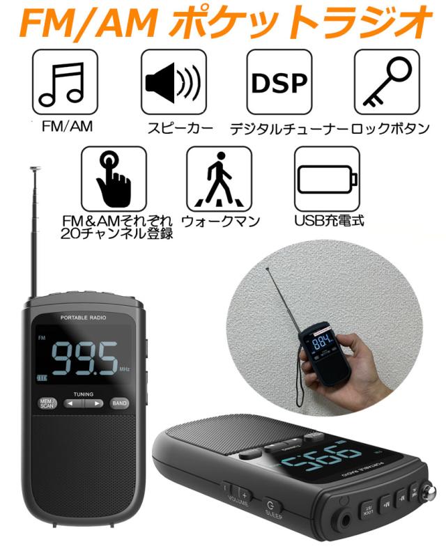 ポケットラジオ ラジオ FM AM USB充電式 おしゃれ ポータブルラジオ 携帯ラジオ ミニーラジオ 通勤ラジオ 防災ラジオ ロック機能搭載 ステレオ 小型 持ち運び 軽量 携帯 おすすめ 時計 アラーム スリープ