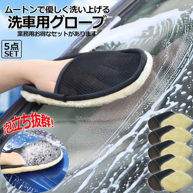 洗車グローブ 洗車用ムートングローブスポンジ 5点セット 洗車グッズ 汚れ取りムートン 泡立ち易い 洗車傷防止 男女兼用 洗車用品 洗車スポンジ カー用品
