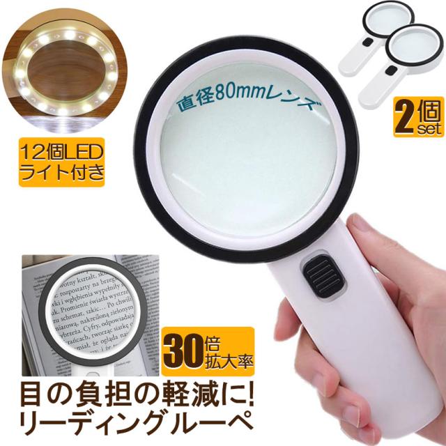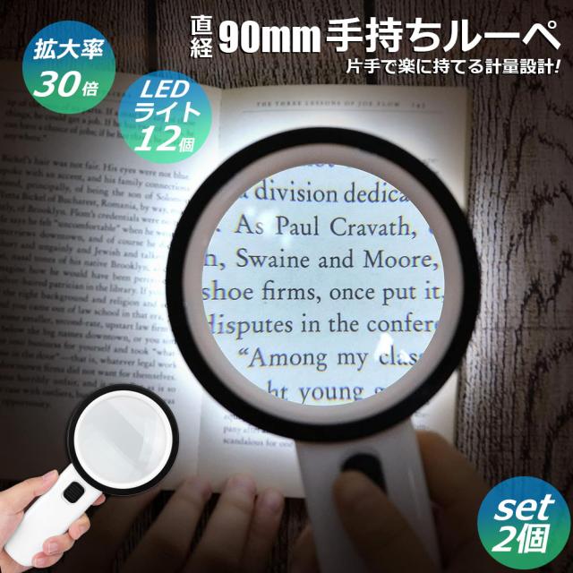 虫眼鏡 拡大鏡 ルーペ LEDルーペ ライト付き 2個セット ハンドライト LEDライト 手持ち 目に優しい 老眼鏡 照明 手芸 読書灯 刺繍 修理 折りたたみ式 昆虫 観察 作業用