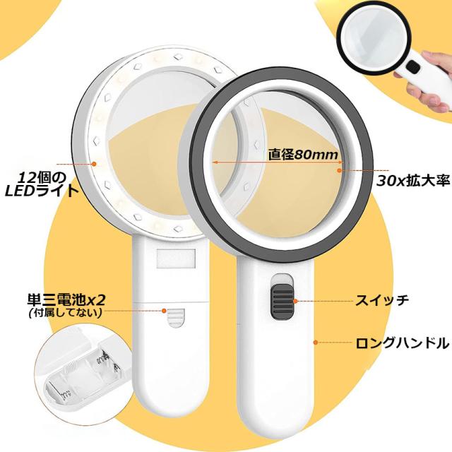 【理想的な拡大鏡】: 本、新聞、雑誌、地図、電子機器、ミニチュア、薬瓶、趣味、工芸品などの細かい部分を観察するのに最適です。【画像をより鮮明に】: 硬くて傷つきにくい機能を備えた30倍の拡大レンズ、高い透明度で、歪みのない鮮明な視界を提供します。