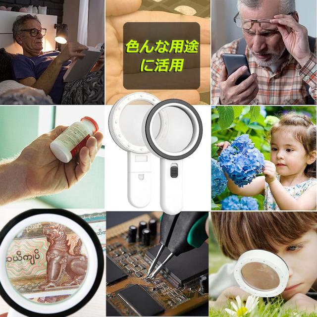 【理想的な拡大鏡】: 本、新聞、雑誌、地図、電子機器、ミニチュア、薬瓶、趣味、工芸品などの細かい部分を観察するのに最適です。