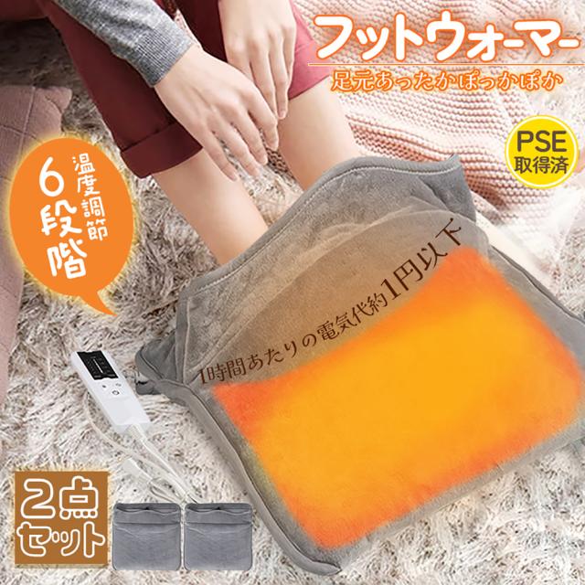 フットウォーマー2枚セット 電気足温器 足元ホットマット 足温器 足元 あったかグッズ 操作簡単 6段階温度調節 タイマー機能 省エネ 電気座布団 冷え性対策 洗える 暖かいパネルヒーター