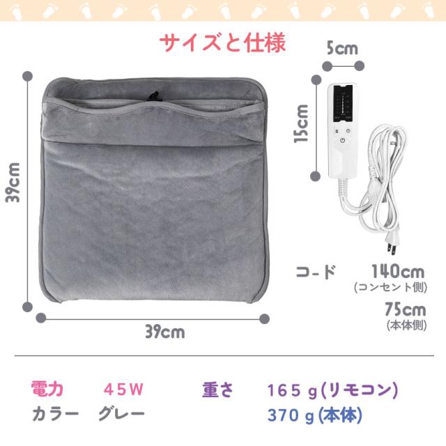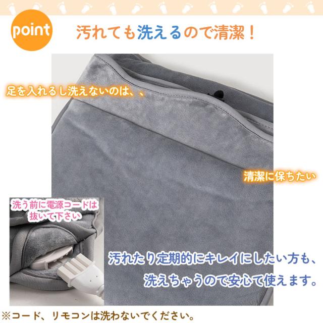 ふわふわ手触りのいい素材で、さわり心地が気持ちいいフットウォーマー。コンセント式の電気足温器で、USBタイプに比べて早く暖かくなります。約40度から60度まで加熱できるので、冷えてしまった足も、足元から身体まで暖かくポカポカに。6種類の温度モードがあるので、過熱や過寒を防止することができます。周りの温度に合わせ、お好みの温度モードを調節できる足温器です。適切な温度設定を選択することで、首、背中、腹部、膝、太もも、足に最大の快適さを提供します。