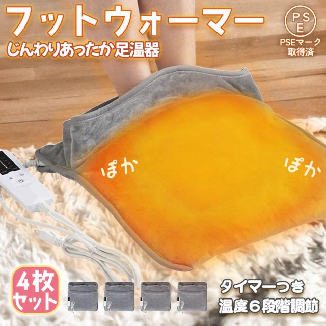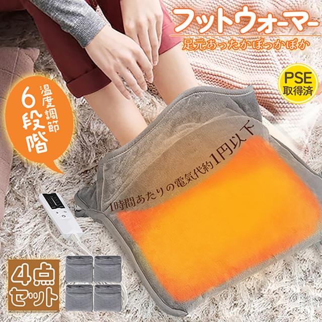フットウォーマー4枚セット 電気足温器 足元ホットマット 足温器 足元 あったかグッズ 操作簡単 6段階温度調節 タイマー機能 省エネ 電気座布団 冷え性対策 洗える 暖かいパネルヒーター