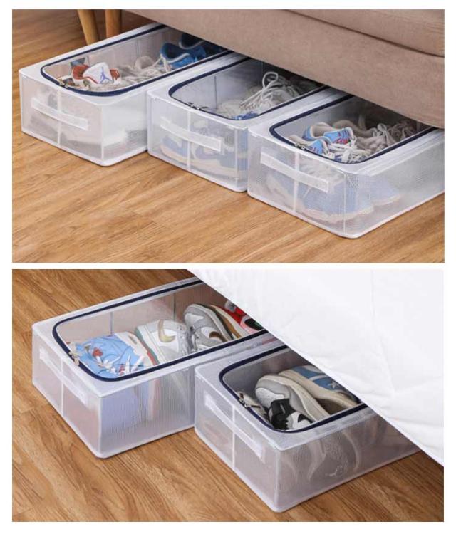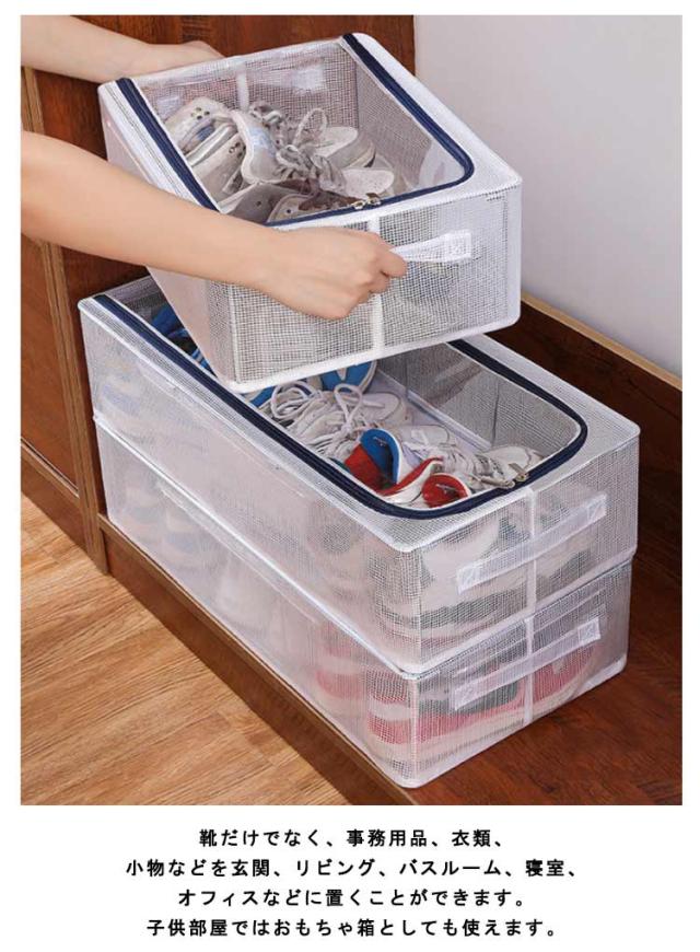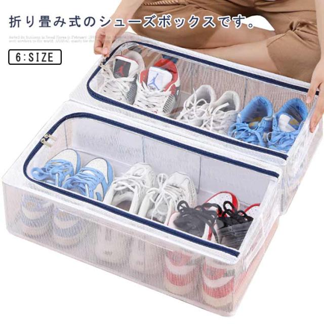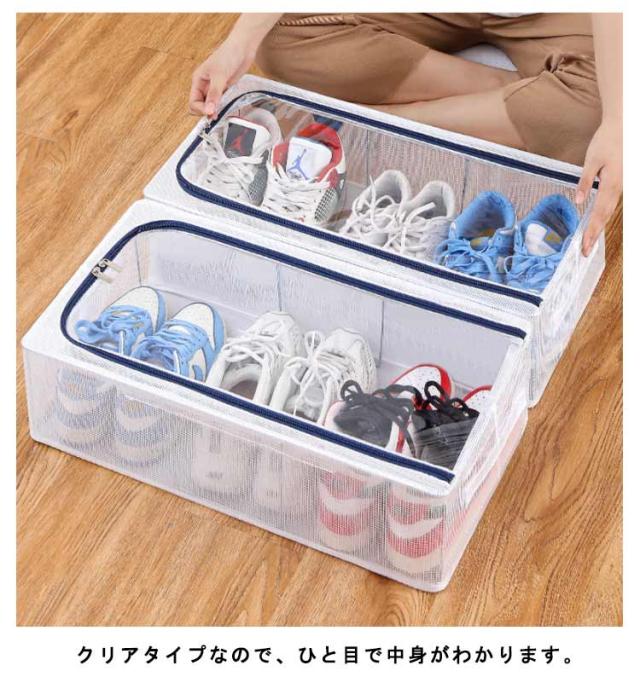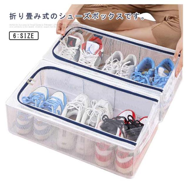 | 折り畳み式のシューズボックスです。 クリアタイプなので、ひと目で中身がわかります。 防水・防塵加工が施されており、湿気やほこりからシューズを守ります。 シューズケースは簡単に折りたたみ可能なので、使わない時は場所をとりません。 スタッキングもできる省スペース設計により室内だけでなく、狭い玄関.ベッド下など狭い空間が利用できます。 靴だけでなく、事務用品、衣類、小物などを玄関、リビング、バスルーム、寝室、オフィスなどに置くことができます。子供部屋ではおもちゃ箱としても使えます。 | |