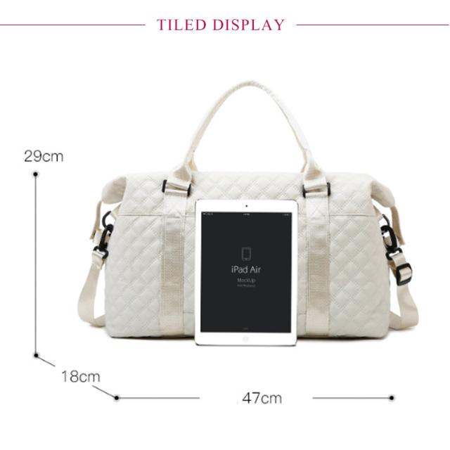| かわいいキルティング、凸凹キュート3wayボストンバッグ デザインと機能性を兼ね備え、旅行、ジム、スポーツなど、これ1つでOK 旅行、マザーズバッグ、サブーバッグ、部活、合宿、1〜2泊の荷物をラクラク収納できる大容量。飛行機の機内持ち込み可能サイズです。 ちょうど良いメインフロア容量、5つのポケットで収納上手。傷や水に強い、丈夫な生地 バッグを使わない時は、折り畳めるので、保管時に場所を取りません。 手提げカバン以外にも、ショルダーバッグ、斜め掛けバッグとしてもご利用可能。 | |