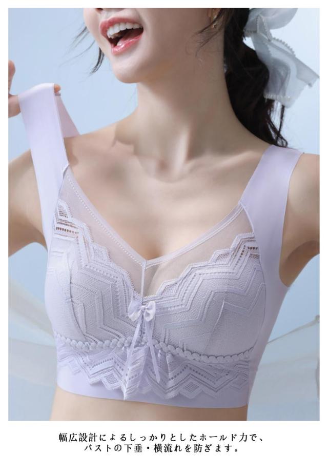 胸を小さくみせるブラ 胸を小さく見せる レース ブラジャー 補正ブラ 脇高 ブラ ノンワイヤー 大きいサイズ 胸を小さく見せる バストケア スマートブラ リラックスブラ バストアップ 補正下着 薄型パッド レース 脇肉 補正ブラ 着やせ ブラ