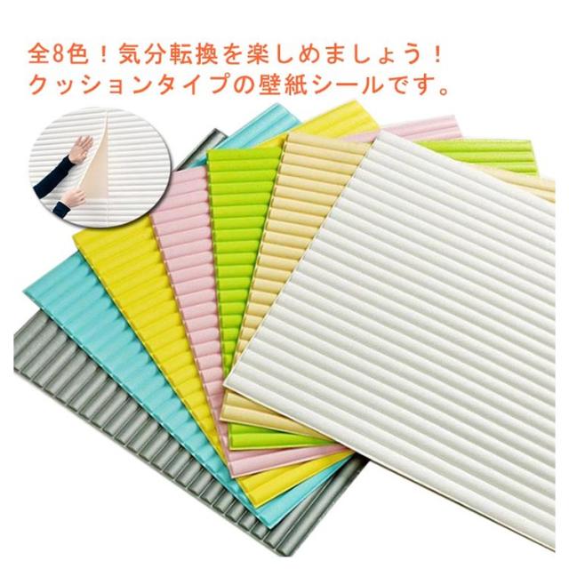 | 全8色!気分転換を楽しめましょう!クッションタイプの壁紙シールです。 柔らかな素材なので、衝撃に強く、転倒時の衝撃吸収に抜群の効果あります。 表面は防水加工をしているので、液体の汚れも付きにくいです。 裏面がシールタイプになっていますので施工も簡単!すぐに使えます! クッションタイプで柔らかいので、子供部屋など危険がある生活空間に。 | |