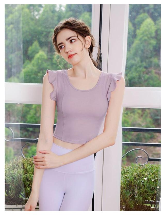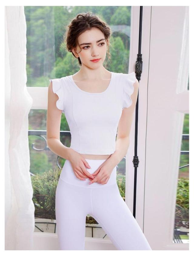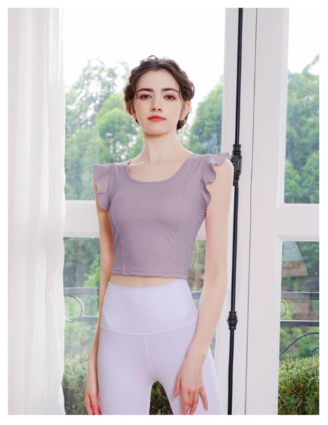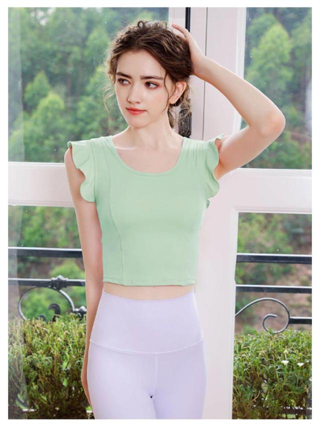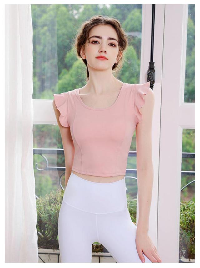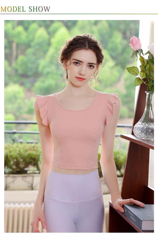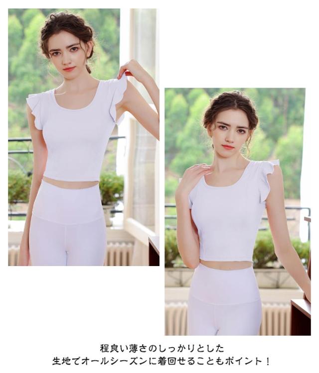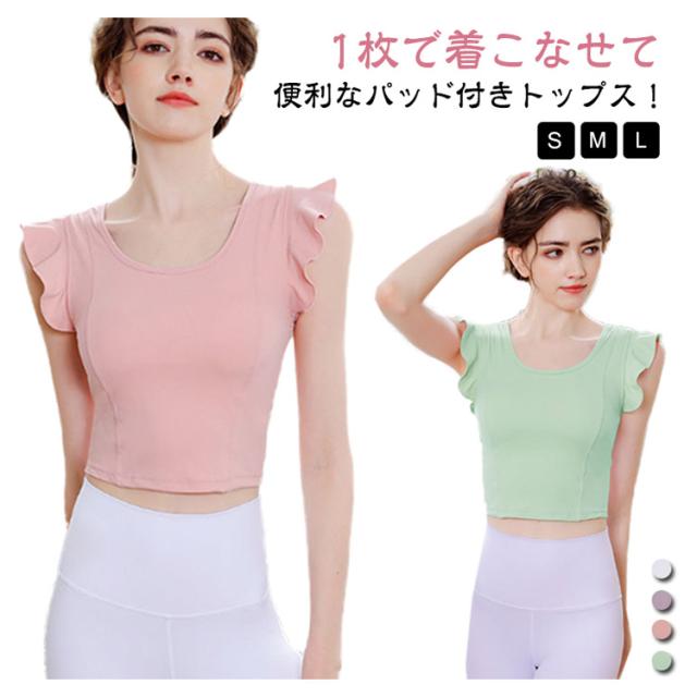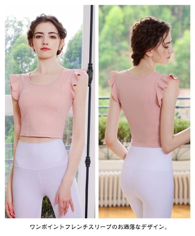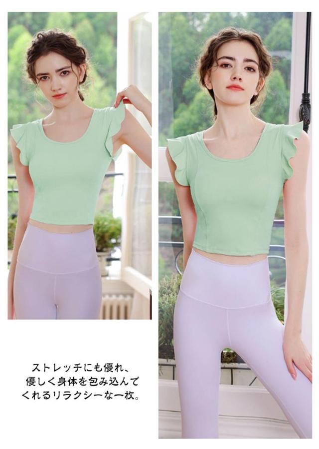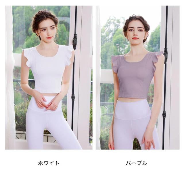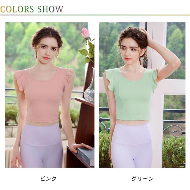 ヨガウェア レディース 半袖 可愛い ストレッチ カップ付き ピラティス ヨガトップス トップス パッド付き 無地 へそ出し スポーツウェア フィットネス ホットヨガ ヨガウェア ダンス衣装 トレーニング