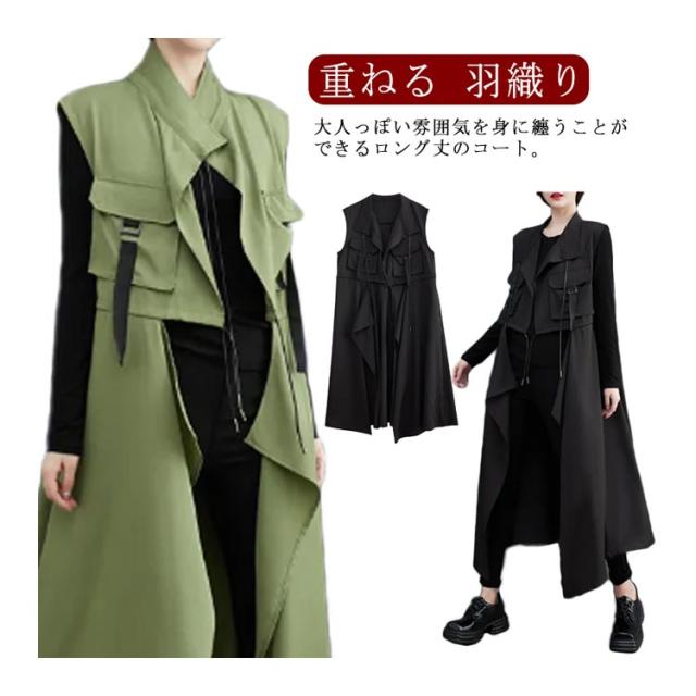 アシンメトリー ロングコート コート アシンメトリー ロングカーディガン レディース 春アウター スプリングコート 無袖 ロングベスト 春 おしゃれ シンプル 重ねる 羽織り 大きいサイズ きれいめ