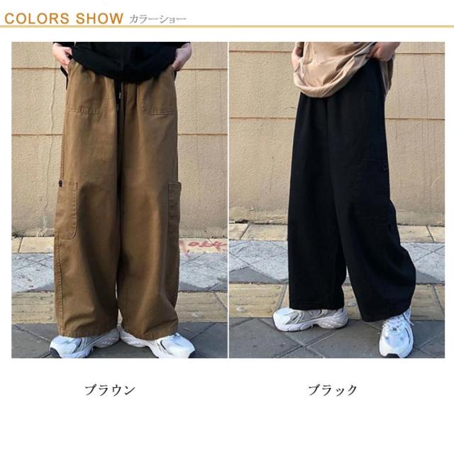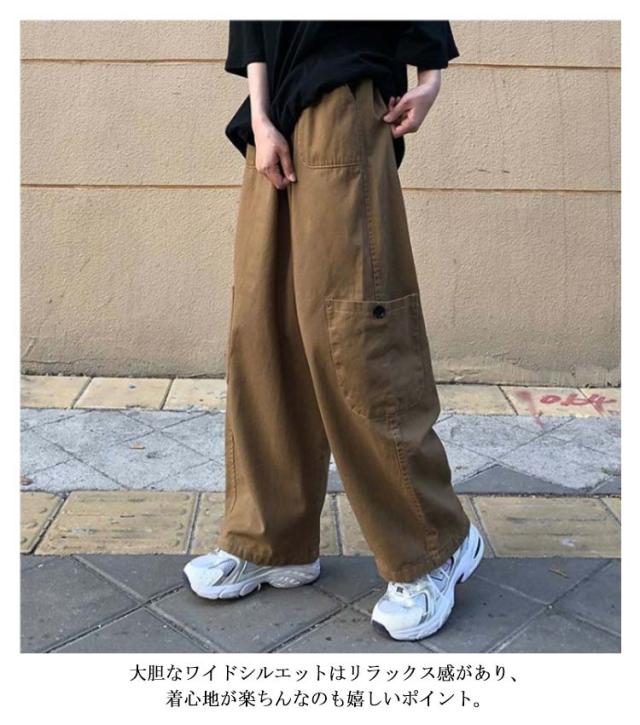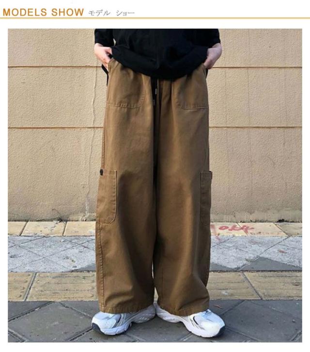 | M-2XL!ワイドテーパードシルエットのストレッチカーゴパンツ 大胆なワイドシルエットはリラックス感があり、着心地が楽ちんなのも嬉しいポイント。 ウエストバックゴム仕様なので、穿き心地も抜群です♪ シンプルなカットソー、パーカーなどと合わせて、トレンドカジュアルコーデの完成です。 | |