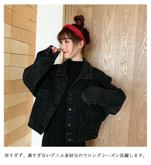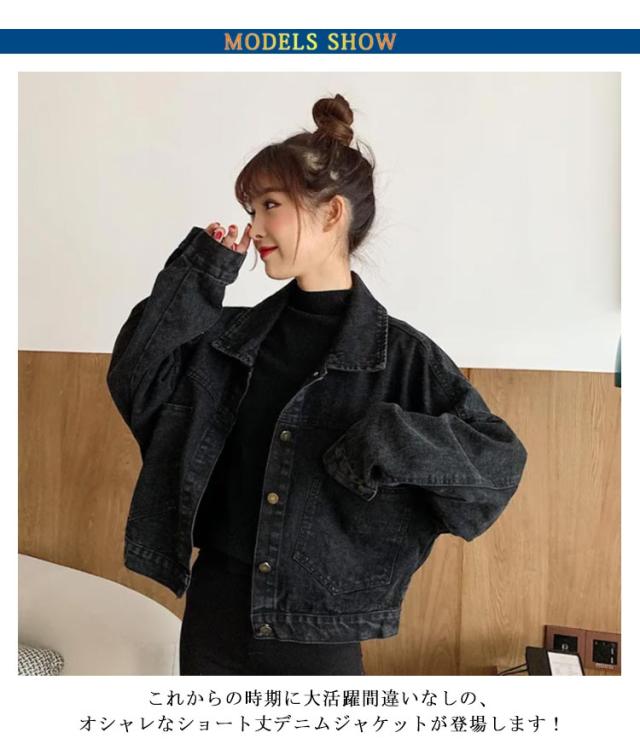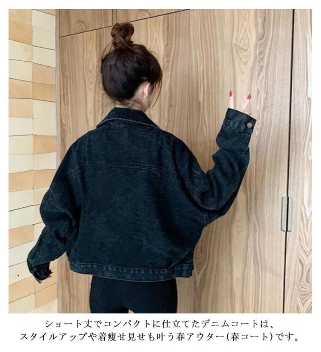 レディース ブラック 春秋 大きめ デニム ジャケット Gジャン レディース ドロップショルダー 秋ジャケット カジュアル ショート丈 ビッグシルエット オーバーサイズ 黒 ジージャン アウター デニムジャケット 抜き襟