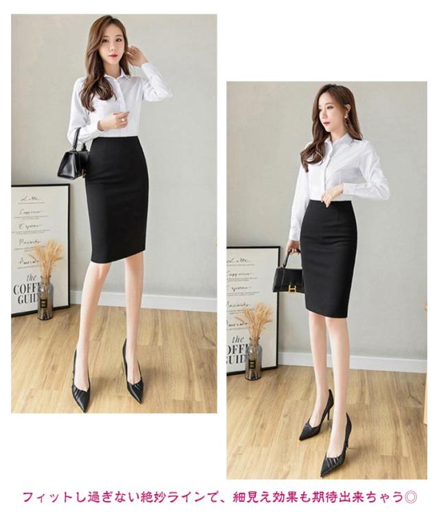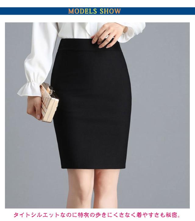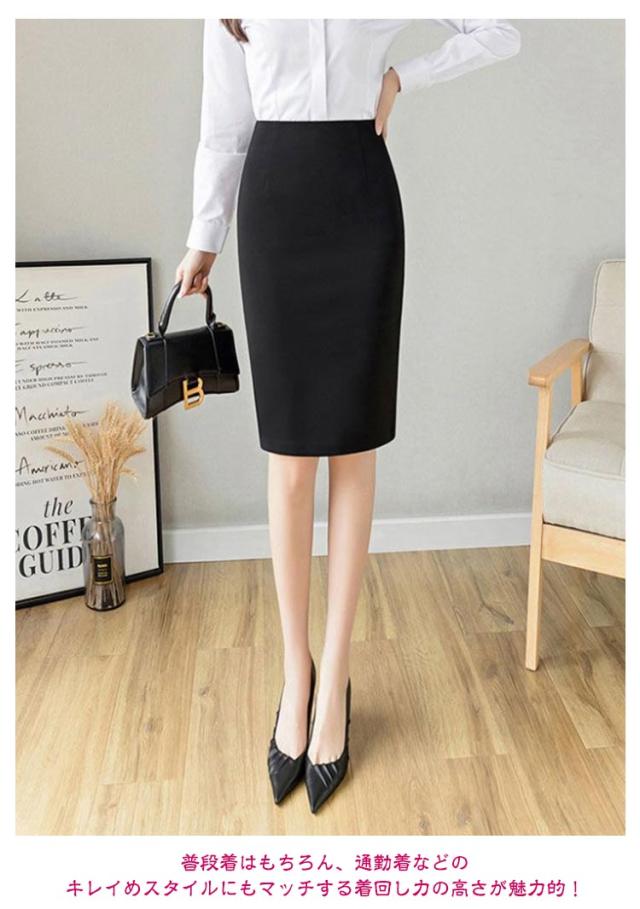 美脚 タイトスカート 事務服 レディース ペンシルスカート ひざ丈 フォーマル 着?せ タイト きれいめ 上品 ミニ ハイウエスト ペンシルシルエット 通勤スカート すっきり 50cm 60cm 70cm 大きサイズ 春夏 オフィス OL 無地 ブラック シンプル 大人女性 送料無料