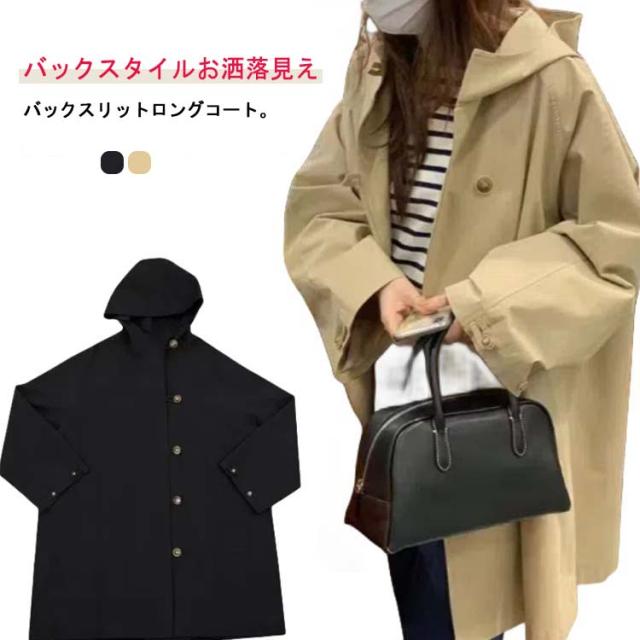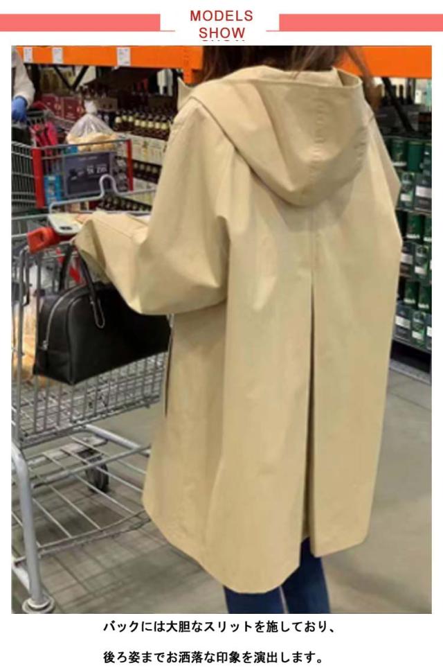 フードコート レディース ロングコート フーデッドコート 春アウター 大きいサイズ コート ミドル丈 バックスリット アウター スプリングコート トレンチコート 秋 ブルゾン ゆったり バックスリット 軽量 羽織り カジュアル シンプル