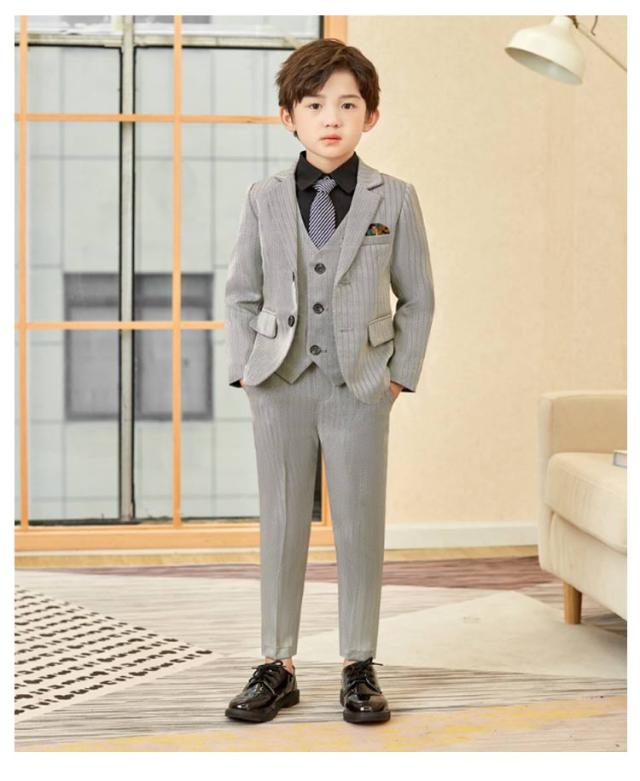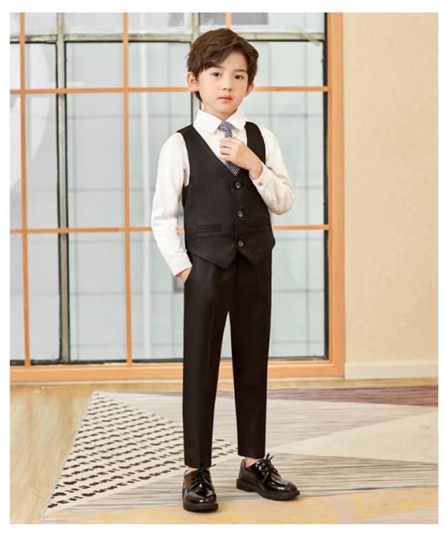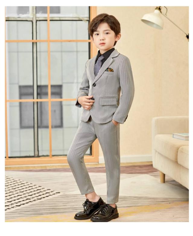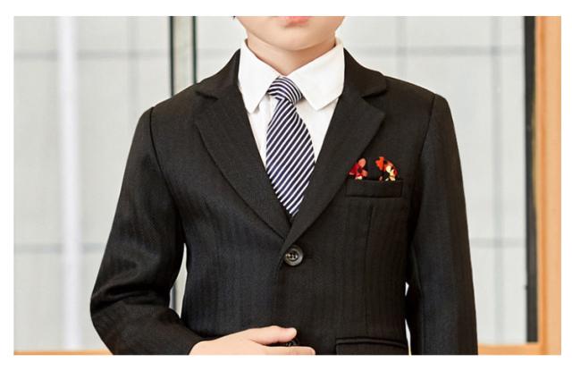 | 男の子パンツスーツ 5点セット ジャケット・パンツ・シャツ・ネクタイ・ジレがセットになった男の子スーツです。 入学式をはじめ、卒園式や七五三、結婚式お呼ばれなど大切な一日のコーディネイトを完璧に、おしゃれに演出してくれる子供スーツセットです。 | |