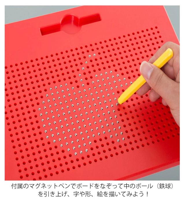 | 子どもの知育玩具男の子と女の子を問わず、だれでも簡単におえがきを楽しめる子供のおもちゃ。 子供たちは想像力を使って絵、形、文字、数字を描くことができます! プラスティック製のボードに、磁石内蔵ペンで遊びます。 付属のマグネットペンでボードをなぞって中のボール(鉄球)を引き上げ、字や形、絵を描いてみよう! 金属球は磁気スタイラスペンで表面に引き付けられ、ペンや指でボールを消してやり直すことができます。 大人も子供も楽しく遊べる知育玩具のマグネットタブレットです。 周りやお洋服を汚さずに遊べるので、安心です◎ 何度でも描くことができて楽しいです♪ お誕生日プレゼントやクリスマスプレゼント、入学祝い・卒業祝いにも最適です。 | |