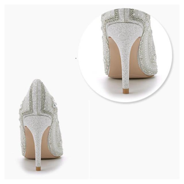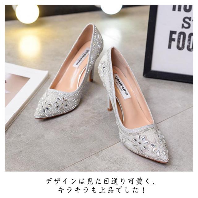 | ウェディングドレスに!花嫁・二次会・結婚式・発表会・演奏会・披露宴・卒業式!結婚式にも、普段にも履けるタイプです。 デザインは見た目通り可愛く、キラキラも上品でした! あと履いた時に足というか立ち姿がキレイに見えるきがします! 上品なシルエットで美脚効果も期待できるハイヒール。 7/9cmの2つ高さを用意しています。 | |
