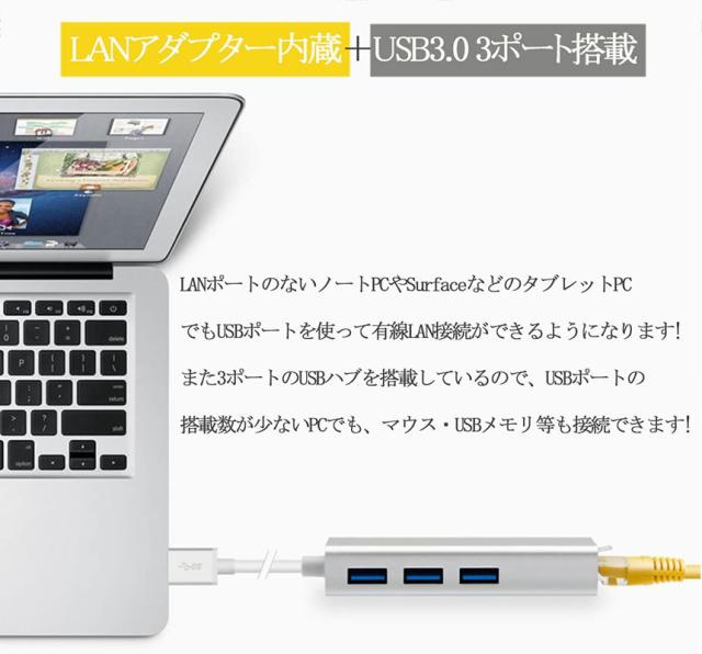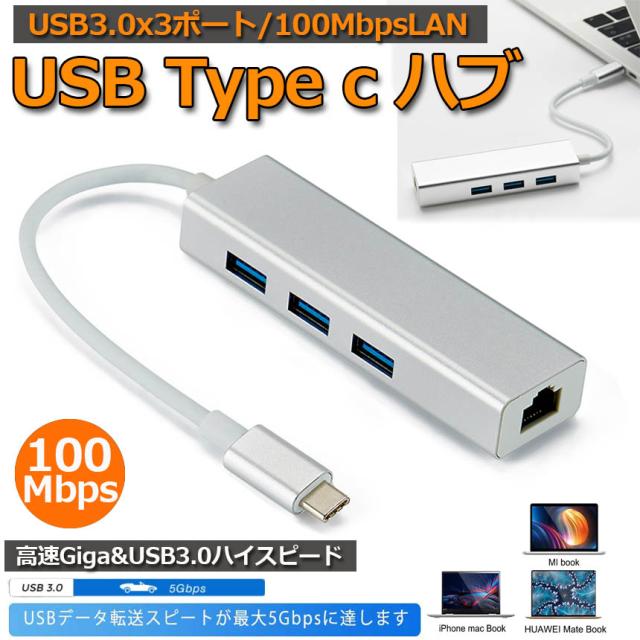 Type-c LANケーブル 変換アダプター usb c ハブ usb タイプc lan変換 LAN USB3.0×3ポート usb type c 100メガバイト 高速データ転送 拡張 軽量 最新版 USB Type - Cデバイス対応MacBook/Chromebook Pixel/Moreusb type c ハブ