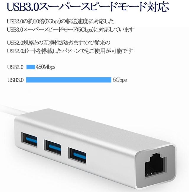 【高い実用性】:本製品はUSB3.0ポートが3つ搭載しており、USBバスパワーとしても利用できます。