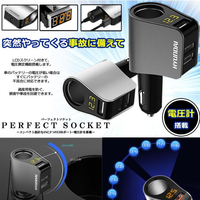 - 今回、カーチャージャーシガーソケット(3ポート)を購入しました。シガーソケットから車の電力状況を常時確認できるので今後のカーメンテナンス等に利用できると思います。