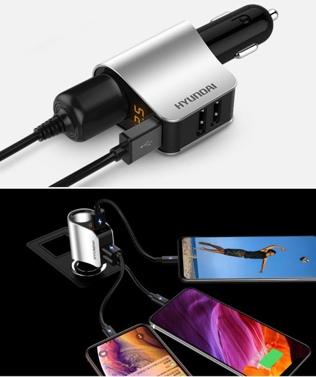 シガーソケットとして三つUSB出力ポートを搭載しており、iPhone、Androidのスマホやタブレットなど、デバイス3台を同時に充電可能です。