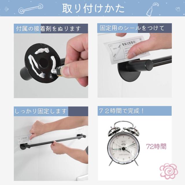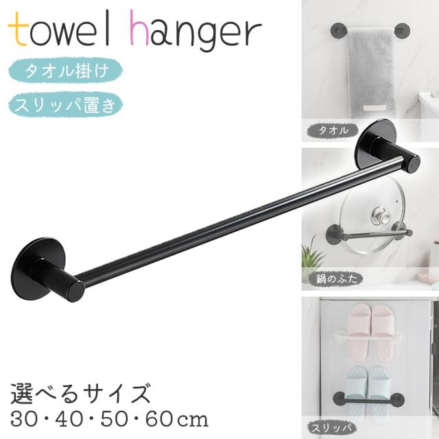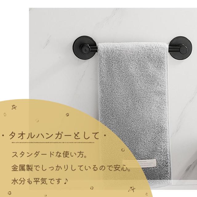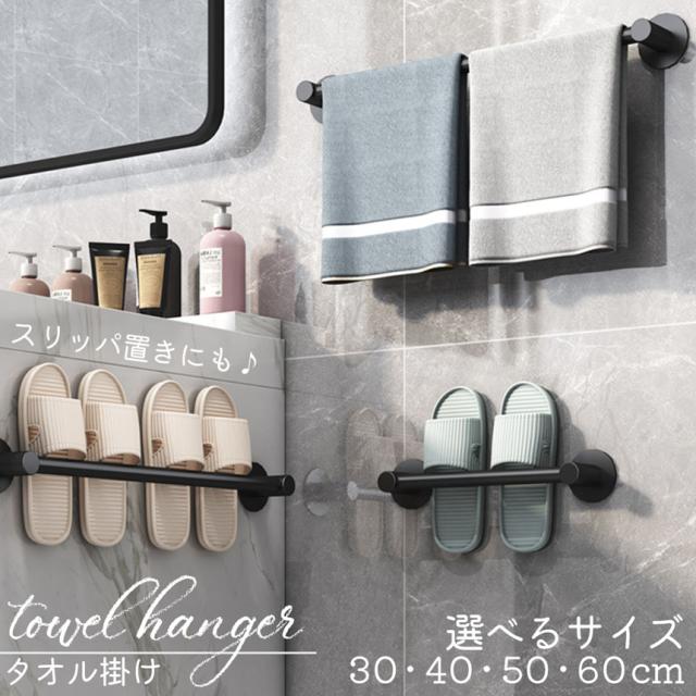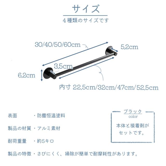 【しっかりしたタオルハンガー4サイズ】用途に応じて、4種類のサイズをご用意しました。いろんな種類のタオル、スリッパ、ハンガーなどに適していて、マットなブラックの落ち着いた色でしっかりとしたアルミ製なので、強靭かつ清潔で、安心してお使いいただけます。