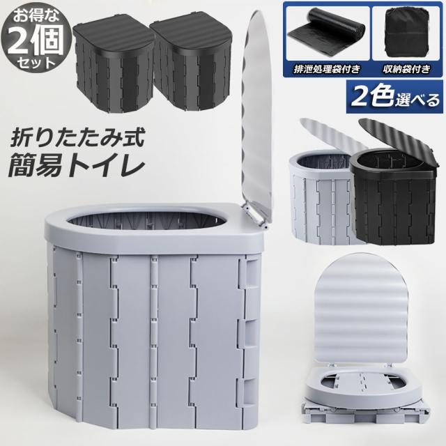 簡易トイレ 非常用 災害用 テント 水洗 2個セット ポータブルトイレ 折りたたみトイレ 携帯トイレ トイレ キャンプ 耐荷重150kg 洗えるプラスチック製 防災トイレ 仮設 トイレ かんいといれ 防災グッズ 車中泊グッズ 車載 介護 便座一体型 持ち運
