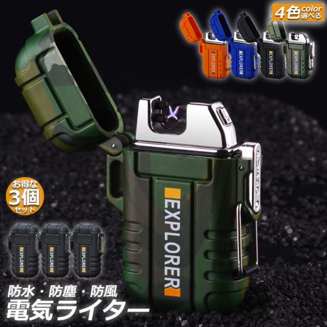 電子ライター 3個セット 充電式 プラズマ 防水仕様 USB 充電式 ダブルアークライター ガス オイル 不要 軽量?薄型 持ちやすい 無炎 防風 電気アークプラズマライター おしゃれ お墓参り bbq