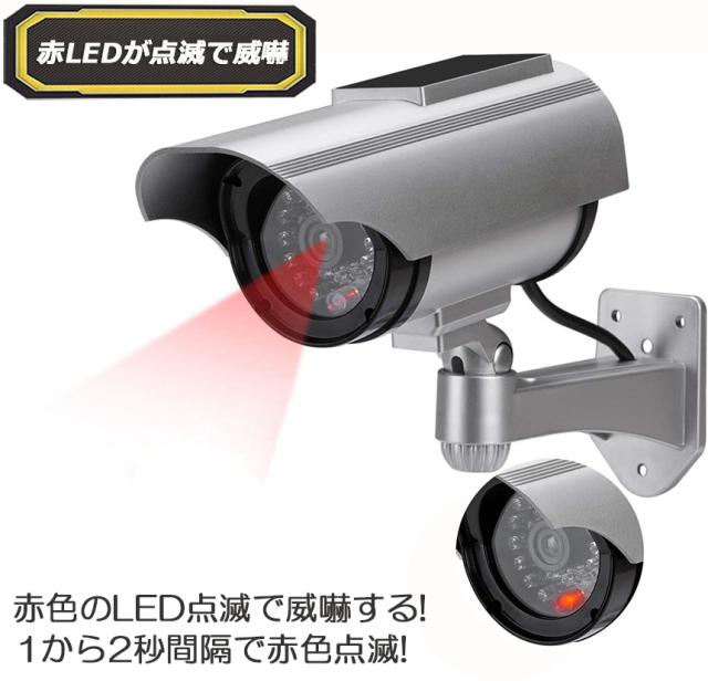 ダミーカメラ ソーラー パネル搭載 屋外 玄関 屋内 防犯カメラ 赤LED常時点滅 防水 屋内外両用 監視カメラ ダミー 赤外線型 防犯対策