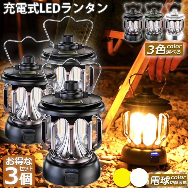 ランタン 屋外 3個セット おしゃれ かわいい ガーデンライト ledポータブルライト 充電式 キャンプライト テントライト 3段階調色 無段階調光 電球色 + 昼白色 非常灯馬 IPX4防水 usb急速充電 キャンプ用品 応急 防災 停電用 災害グッズ