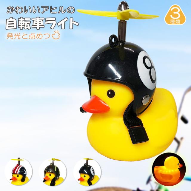 自転車ライト アヒルライト 黄色アヒル 可愛い 自転車ベル プロペラ搭載 音が出る ライト点滅 夜間走行に バイク 車にも ヘルメットにプロペラ付き 車内インテリア 取付簡単 夜間 アヒル隊長