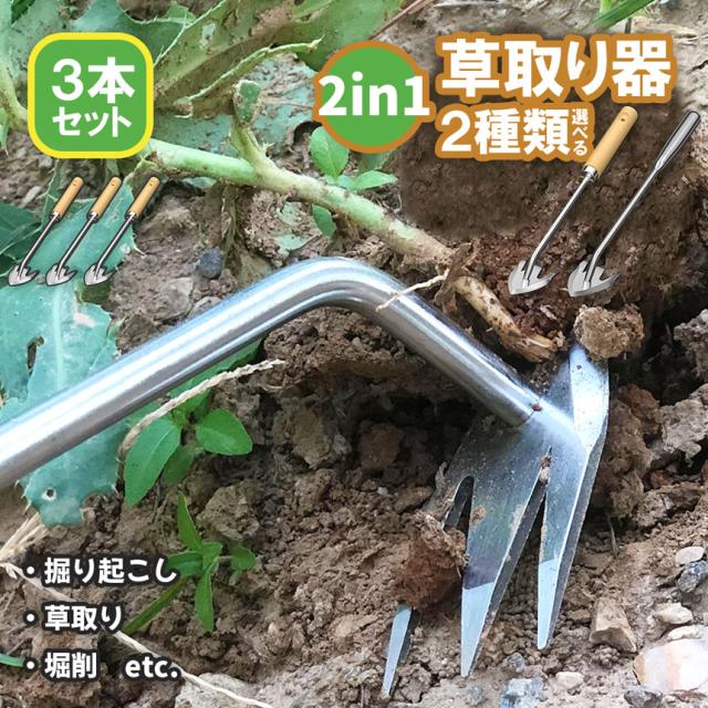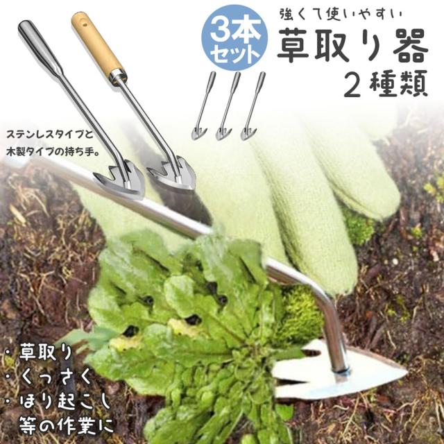 草取りお得な3本セット 草取り器 草取り道具 ステンレス製 草抜き 2種類選択可 草刈り 除草ツール 草取りグッズ 根こそぎ 除草工具 農作業 ガーデニング 園芸用 菜園 掘削