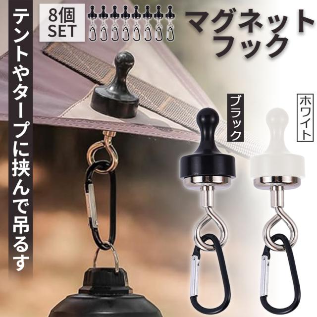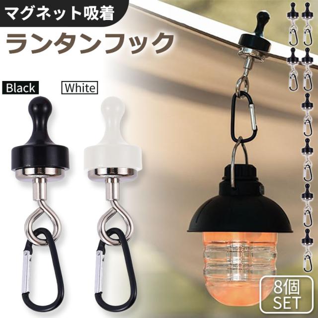 ランタンフック 2色選べる 8個セット マグネットフック 磁石 カラビナ テント タープ キャンプ アウトドア 吊り下げ ハンガー 小物 冷蔵庫 グッズ アウトドア用品 キャンプグッズ ランタンハンガー ブラック ホワイト 黒 白