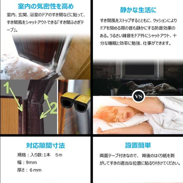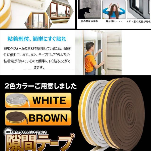 【冷暖房効率アップ】夏に冷気がすきまから逃げ出す、冬に窓からの隙間風が寒いなどのことは困りますね。このパッキンテープは窓やドアの隙間に貼るだけて、室内の冷暖気の漏れることを止め、効果的にエアコンの効率をアップさせ、涼しい夏、暖かい冬を過ごしましょう。