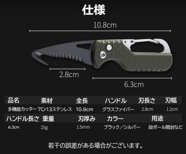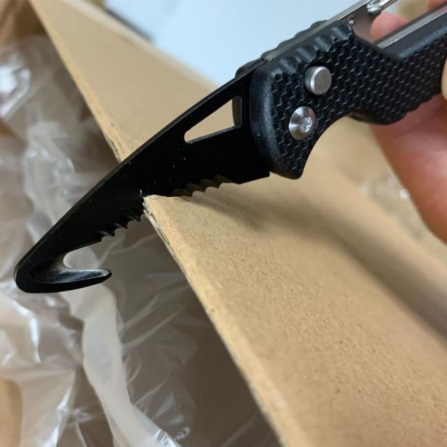 【フック型カッター】先端がフック型になっており、段ボール開封の時中の荷物をきずつけない設計になっております。【多機能】のこぎりつきで段ボール開封だけではなくアウトドアにも使用可能。