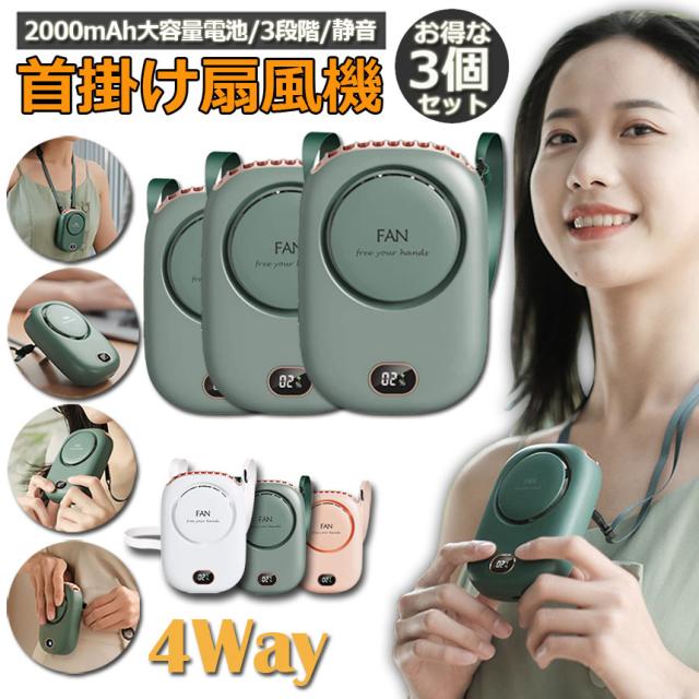 首掛け扇風機 携帯扇風機 3個セット ベルトファン 腰掛けファン ハンドルファン 卓上両用 スタンド機能 usb Type-C 充電式 2000mAh 10H長時間稼働 3段階風量調整 静音 小型 ミニファン 軽量 持ち運び 熱中症対策 ネッククーラー 電気残量表示