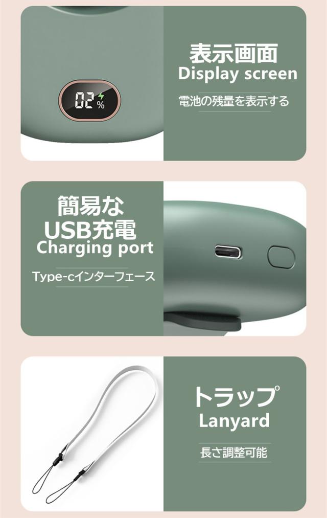 【電気量表示パネル付き&USB充電方式&長時間連続使用】電気量と風力強度を表示できます。お客様はいつでも電気量状況を了解できます。Type-cのインタフェースは急速に充電できます,2時間内にフル電気量になれます。2000mAh大容量の内蔵電池を採用し、最大9時間連続使用可能!フル充電の場合、弱風で約9時間、中風で約4時間、強風で約2.5時間の連続使用が可能です。外出にもお気軽いに使用いただけます。パソコン、車載USB充電器、モバイルバッテリーで充電しながら使用もできますので、お出かけ時や充電ができない場所でも安心です。