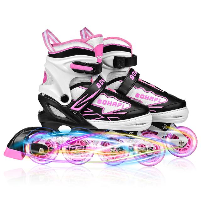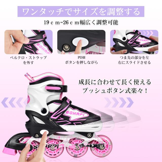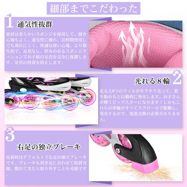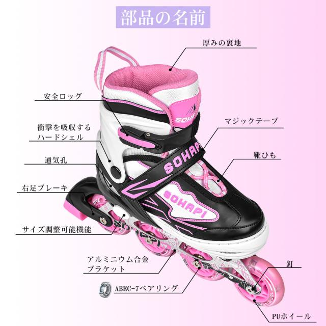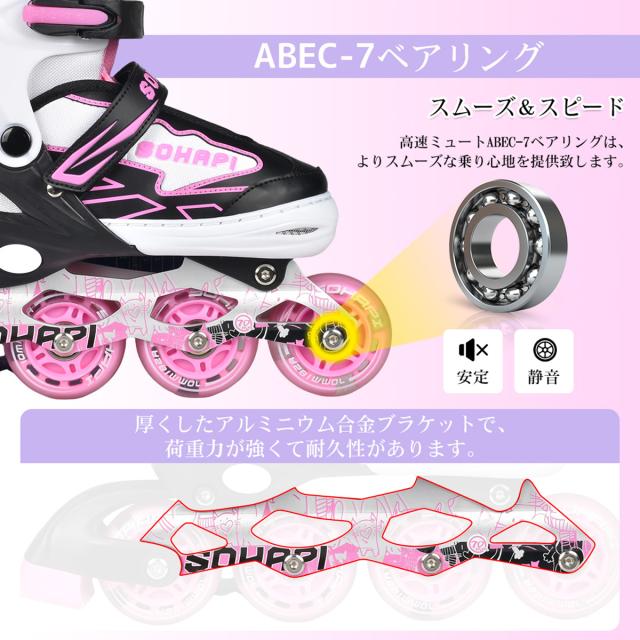 【送料無料】インラインスケート インラインシューズ ローラースケート 大人 子供用 ジュニア ローラー ローラーブレード キッズ 子供用 初心者向け 耐久 通気性抜群 安全 静音 4サイズ調整可能 バッグ付き 贈り物 誕生日 ピンク
