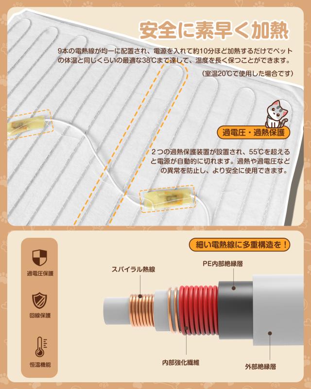 【送料無料】 ペット用 ホットカーペット スマート恒温 ペット ヒーター マット 猫 犬 冬 暖房 器具 小型犬 電気毛布 電気ヒーター IP67防水 専用カバー2枚付属 過熱保護 噛み癖対策 難燃保護 贈り物