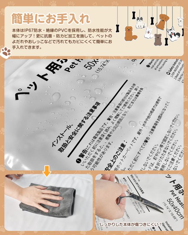 セット内容 1 xペット用 ホットカーペットTT104本体1個、2 x専用カバー2枚、1 x日本語取扱説明書
