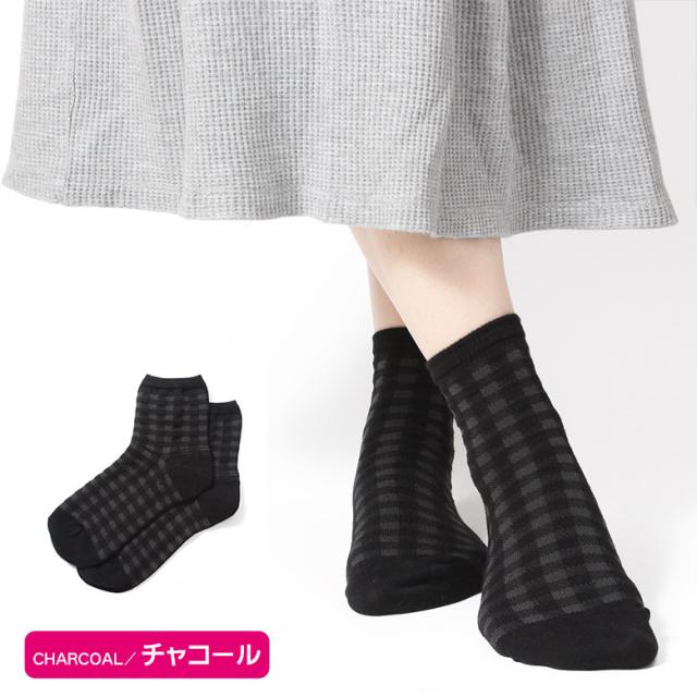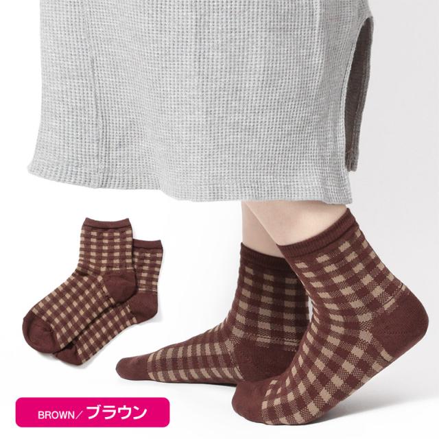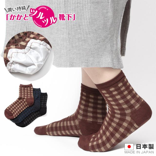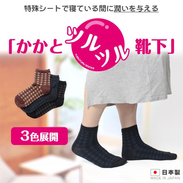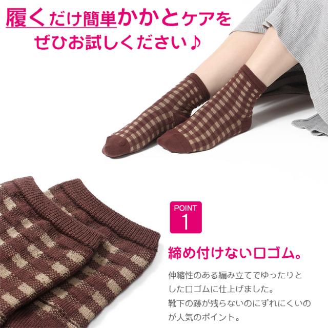 かかとツルツル靴下 綿混 薄手 (ギンガムチェック) かかとケア靴下 かかとつるつる かかと保湿 かかと靴下 23-25cm ★259 太陽ニット