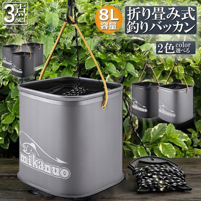 釣り バケツ バッカン 水汲み みずくみバケツ 釣り 3個セット 折りたたみ バケツ 8L 魚が逃げない ロープ EVA 海釣り 生かしバケツ 釣り 水くみバケツ アウトドア コンパクト