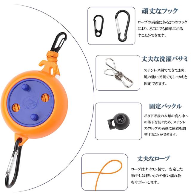 物干し 洗濯物干しロープ ナイロンロープ製 収納に便利 長さ調節可能 キャンプ用物干し 屋外 屋内用 最大8メートルまで 持ち運びやすい 防風 滑り止め 収納袋付き 防風 長さ調整可能 ホテル旅行 出張 キャンプ ベランダ 裏庭 物干しロープ 室内室外