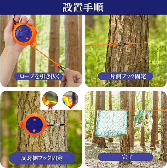 【多用途】物干しロープだけではなく、予備のロープ、テントの固定ロープ等の状況も使えます。