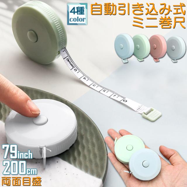 メジャー巻き尺 洋裁 裁縫 定規 巻き尺 テープメジャー 2m 200cm 79inch 4カラー選べる バスト ウエスト 測定 インチ センチ メジャー 服 巻尺 服 布メジャー 両面目盛 オートメジャー 巻取りボタン付き ロングメジャー 計測 手芸 軽