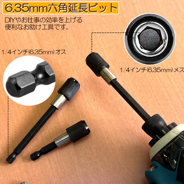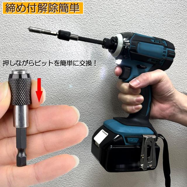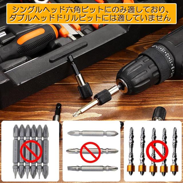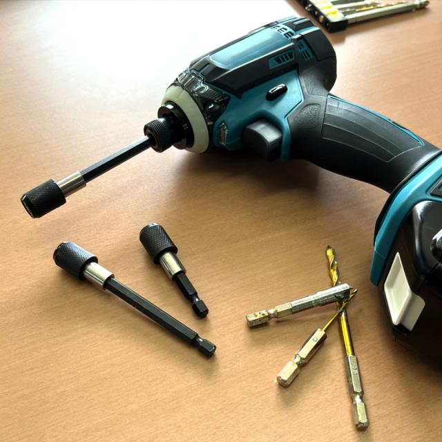 電動ドライバーやドリルビットを使用するときに非常に便利です、長さが足りなくて奥まで届かない時などに便利です。ワンタッチで装着可能、使い方簡単、特に狭い環境下で操作するのに適合します。