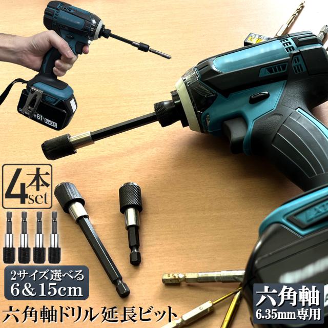 ドリル 延長 ロッド ドリルビット 4本セット 60mm 100mm 六角延長 六角軸 1/4インチ 6.35mm 延長ビット シャンク ソケット ビット 延長棒 延長ロッド インパクト ドライバー DIY 工具 木材 棚 大工 狭い 作業 頑丈